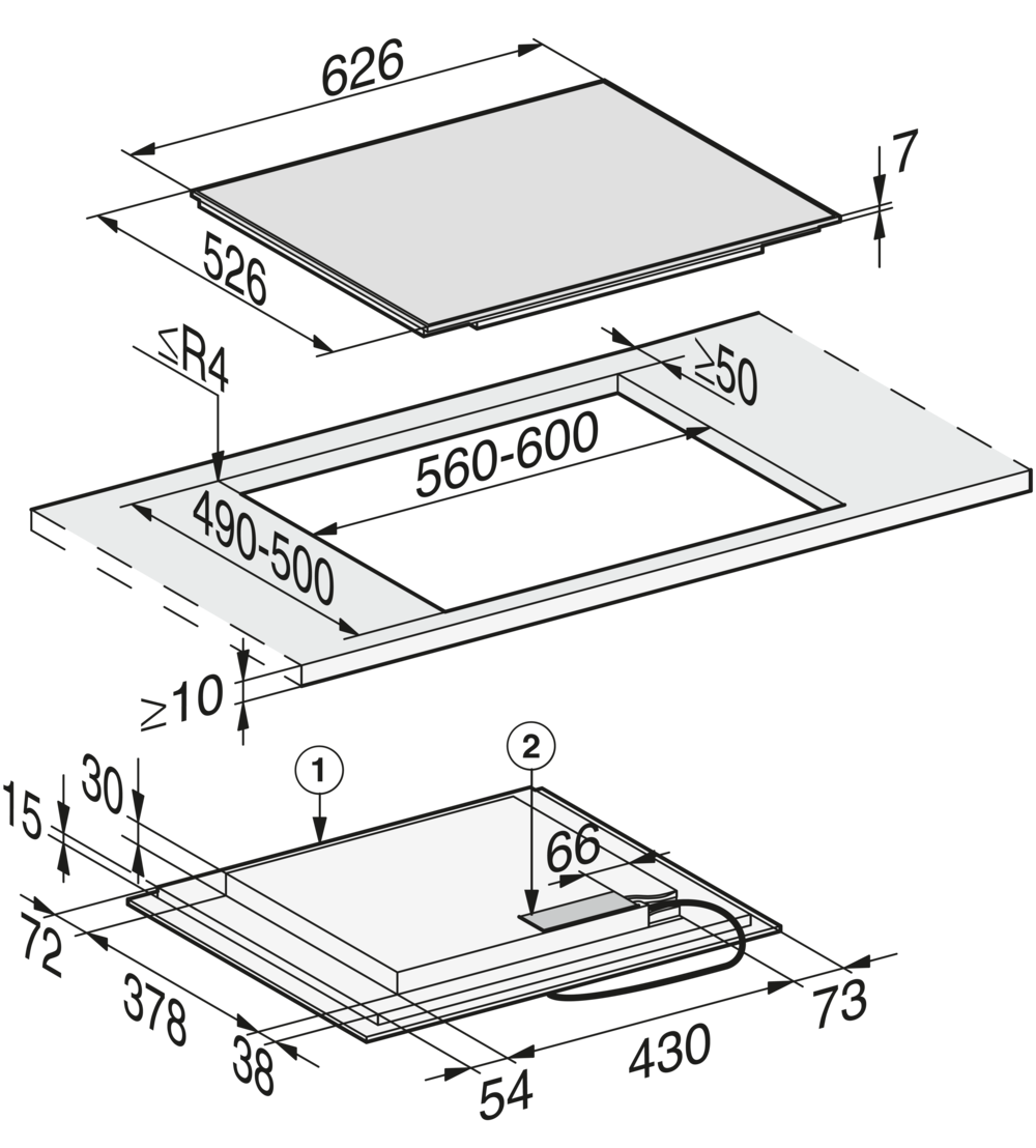 Внутренние размеры выреза в мм (ширина) для встраивания заподлицо