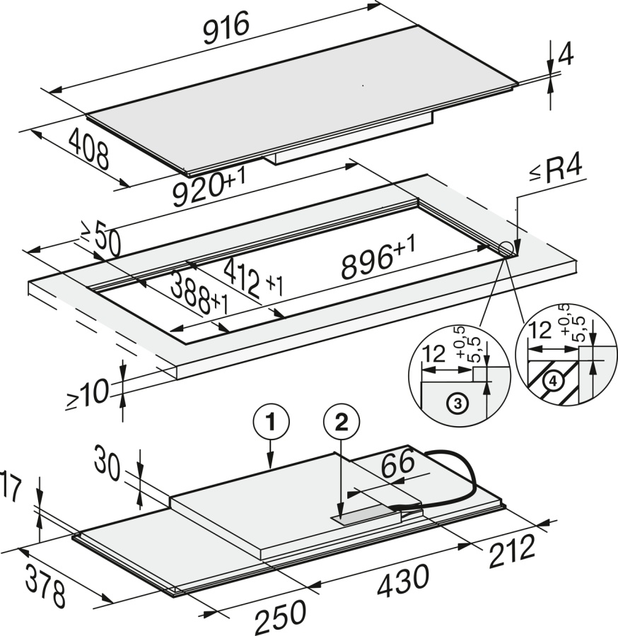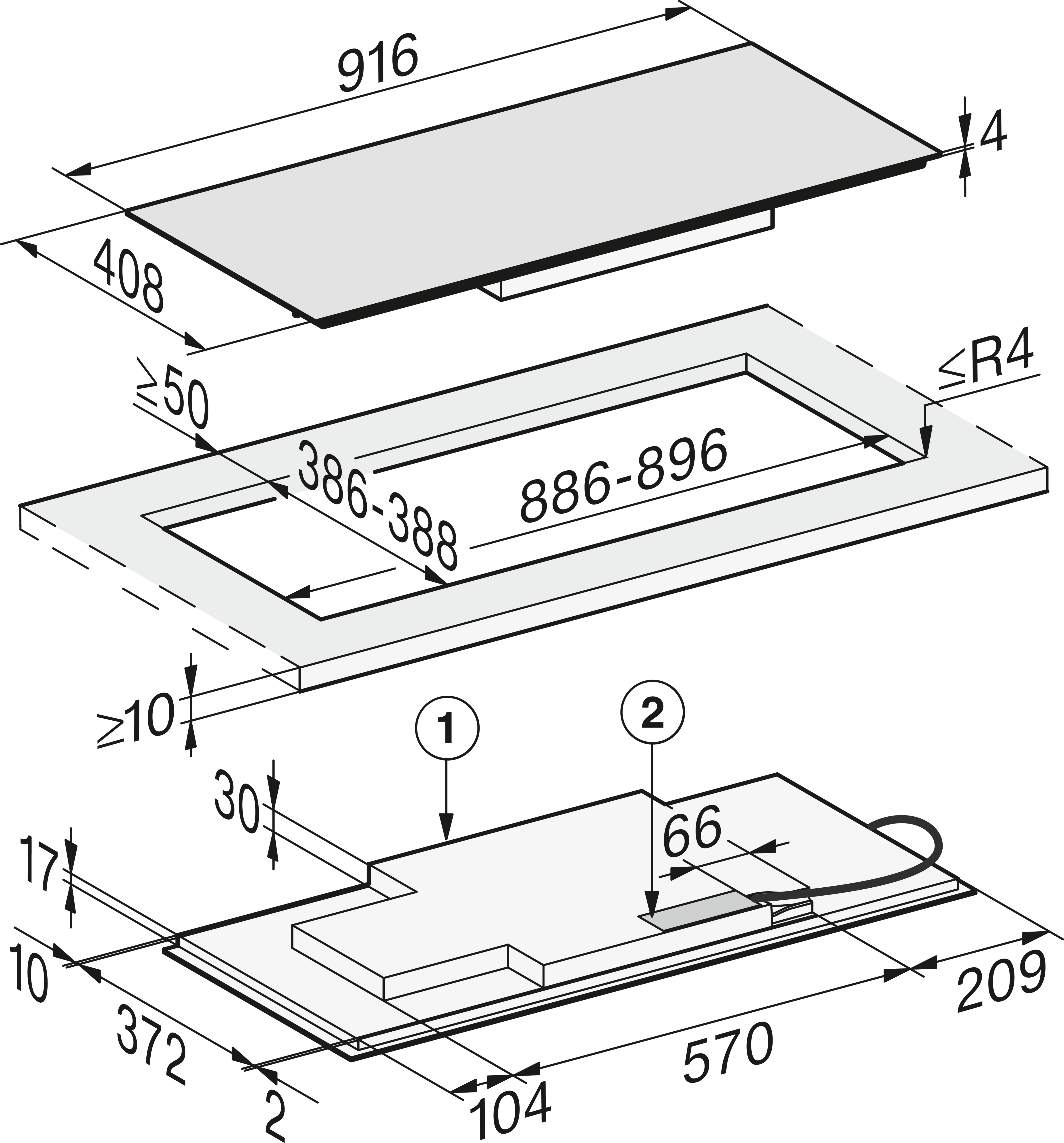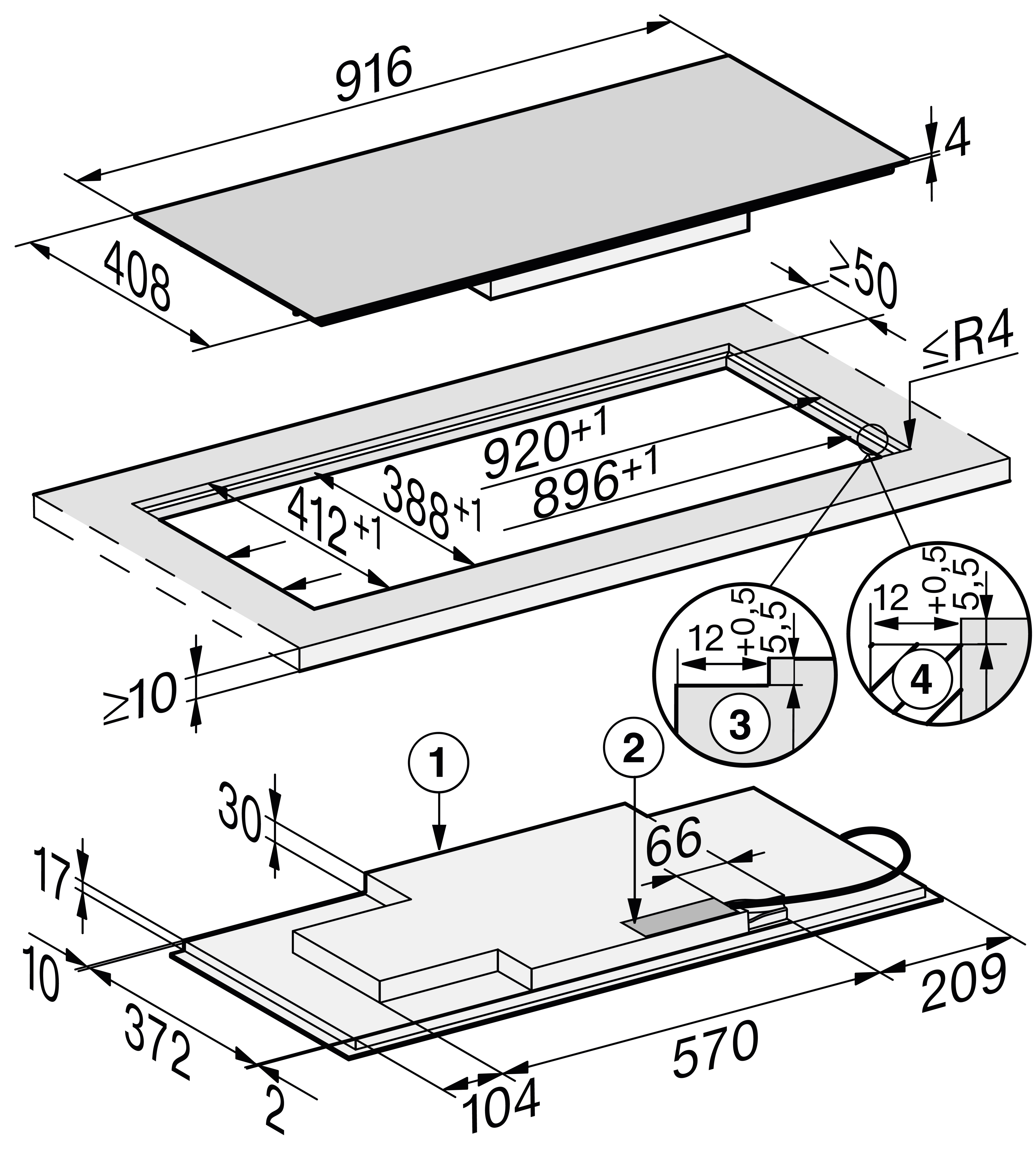 Внешние размеры выреза в мм (ширина) для встраивания заподлицо
