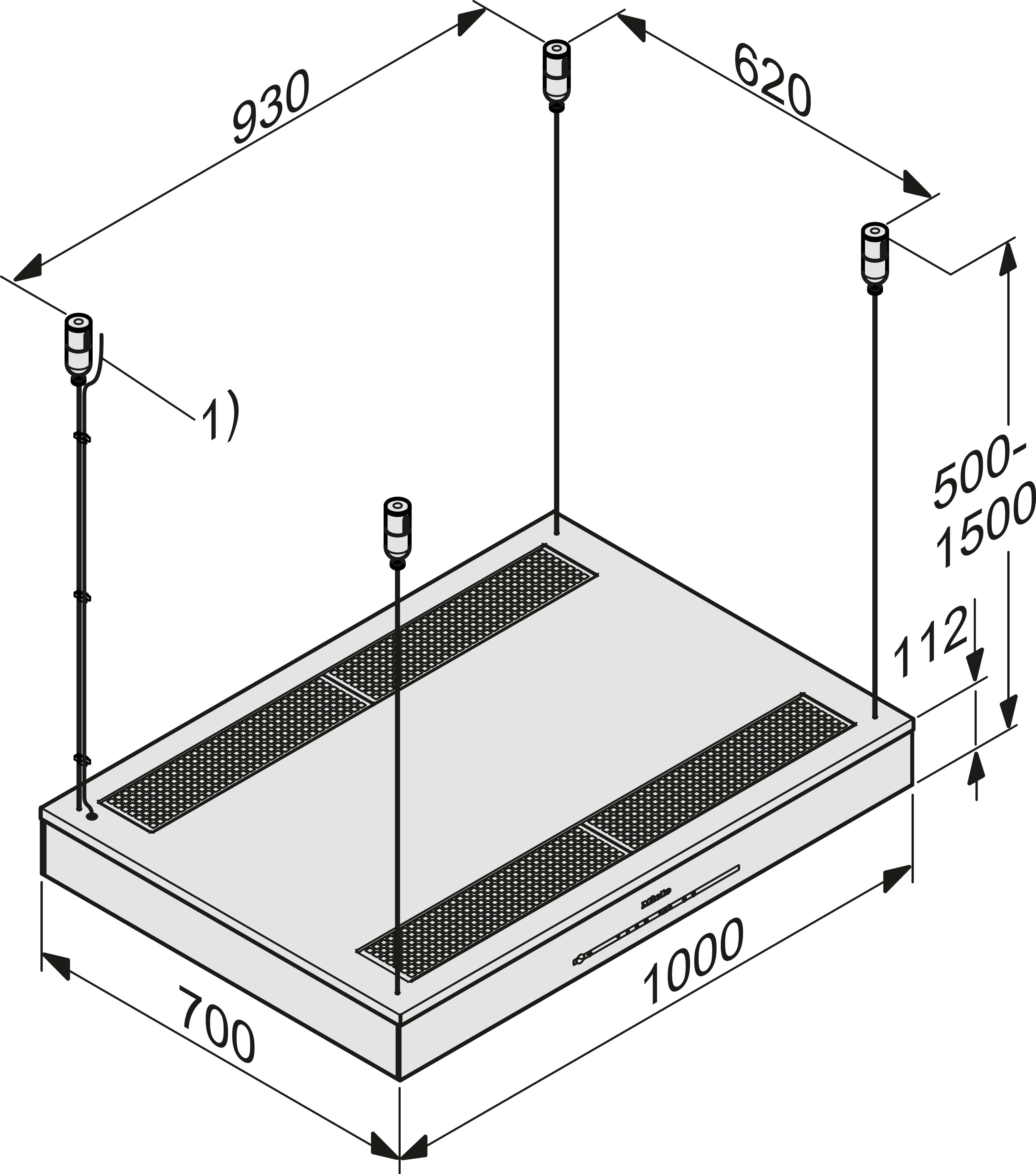 Общая высота кухонной вытяжки в режиме рециркуляции минимально, в мм